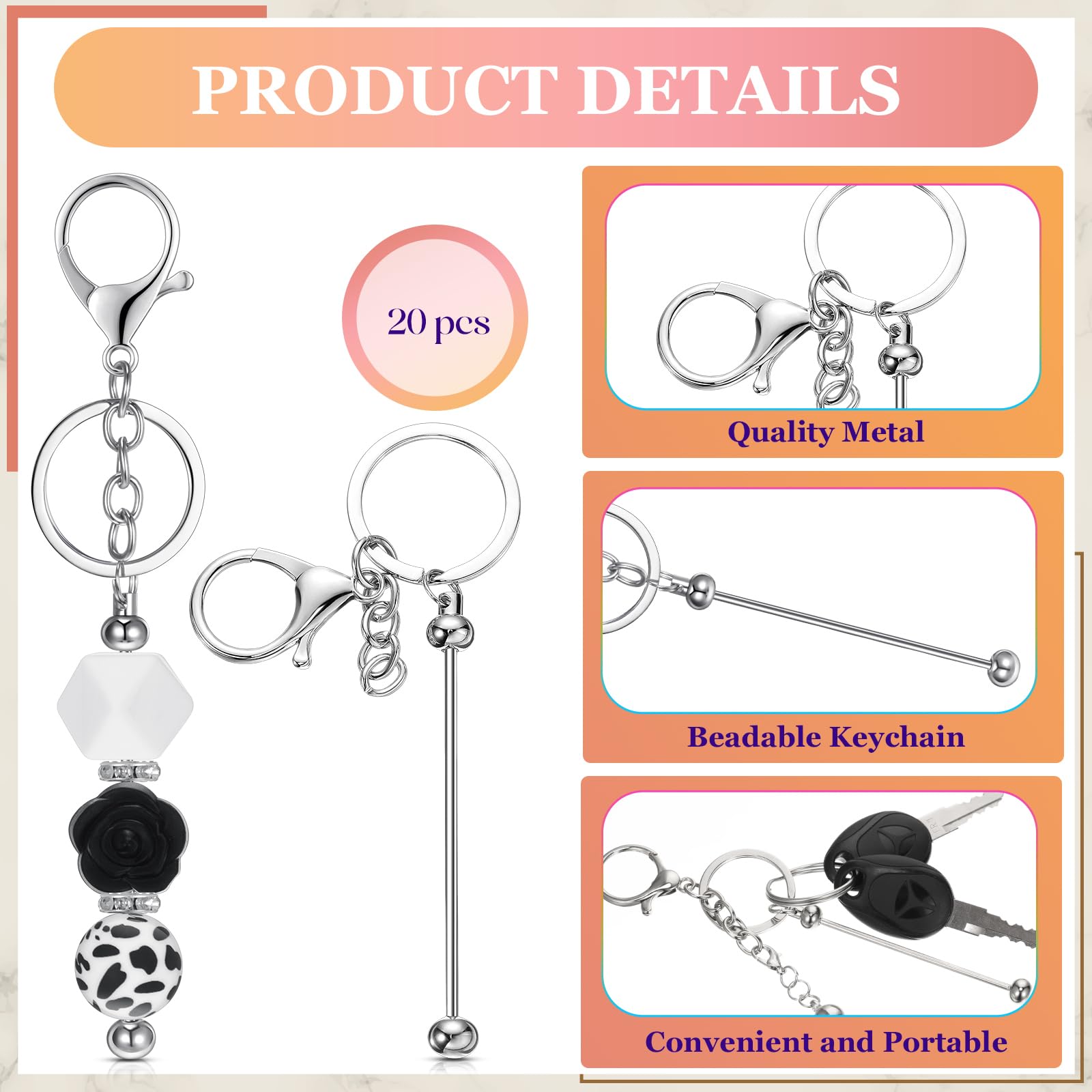 - Sufficient Quantities: with 20 pieces of varying beadable keychain bars included in silver and black, each one is roughly 5.83 inches long, and provides ample space for your beads and trinkets; Create mementos for loved ones or one of a kind items for yourself; This generous pack size is ideal for crafting or gifting sessions, making them an ideal expression of creativity and thoughtfulness