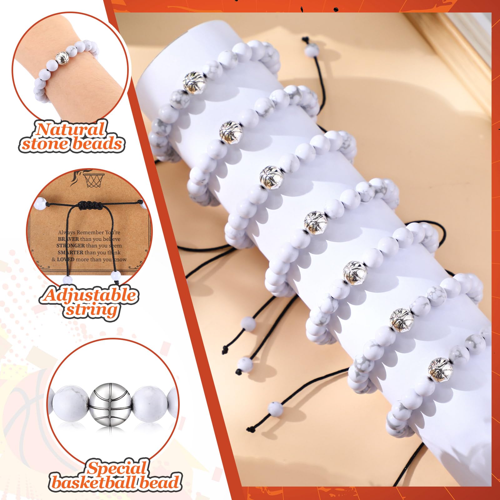 - Adjustable Size: these basketball beaded bracelets come with a sturdy adjustable clasp, which can flexibly adjust the length and tightness, suitable for most wrist sizes, comfortable to wear