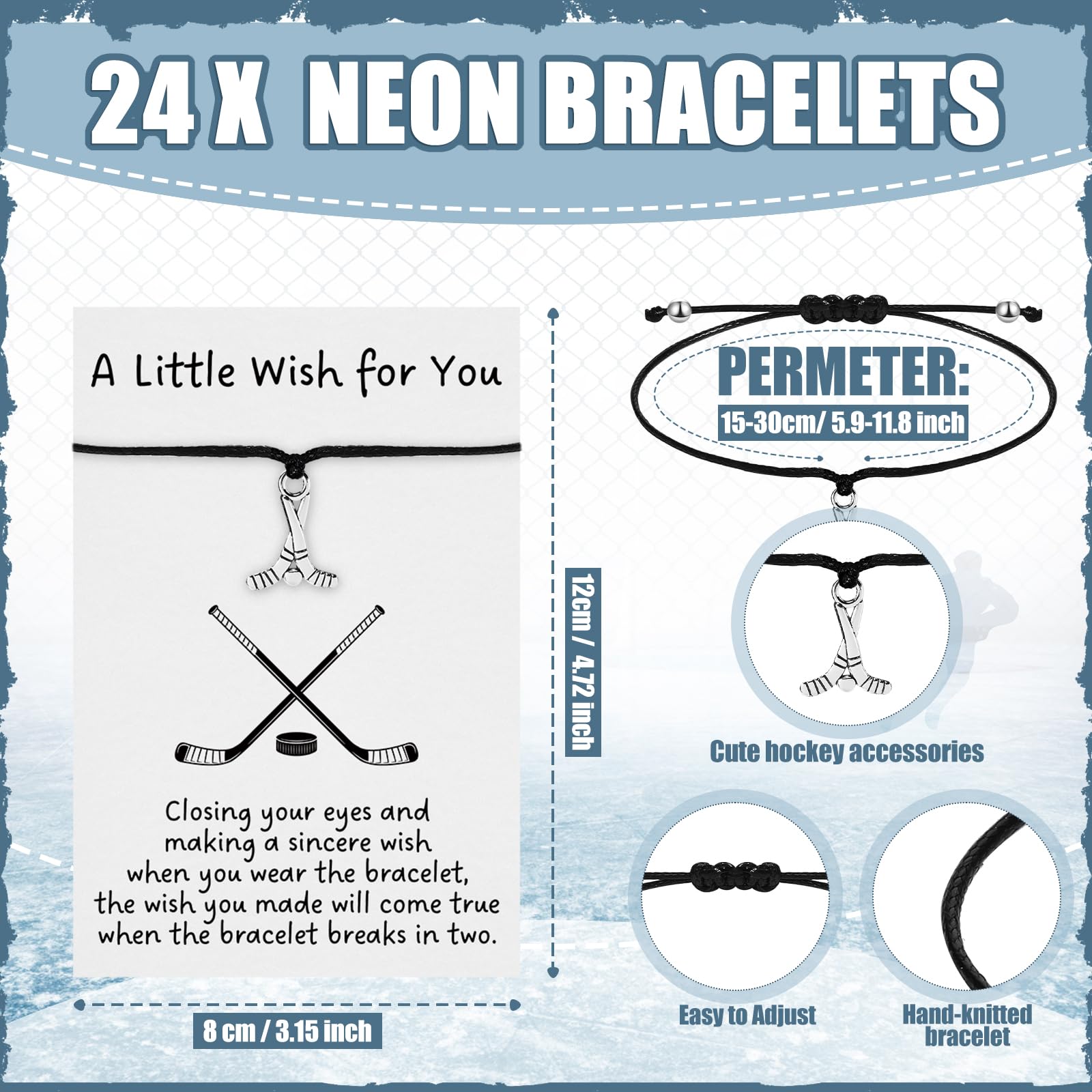 - Adjustable Stylish Hockey Bracelets: the sports bracelets are not only fittingly fashionable but also adjustable; They can range from 6.3 inches to 10.24 inches, making them suitable for most people alike; Cool and comfortable, these bracelets are a nice party accessory and an ideal way to show off your love for the sport; Every guest will leave with a memento they can wear again and again