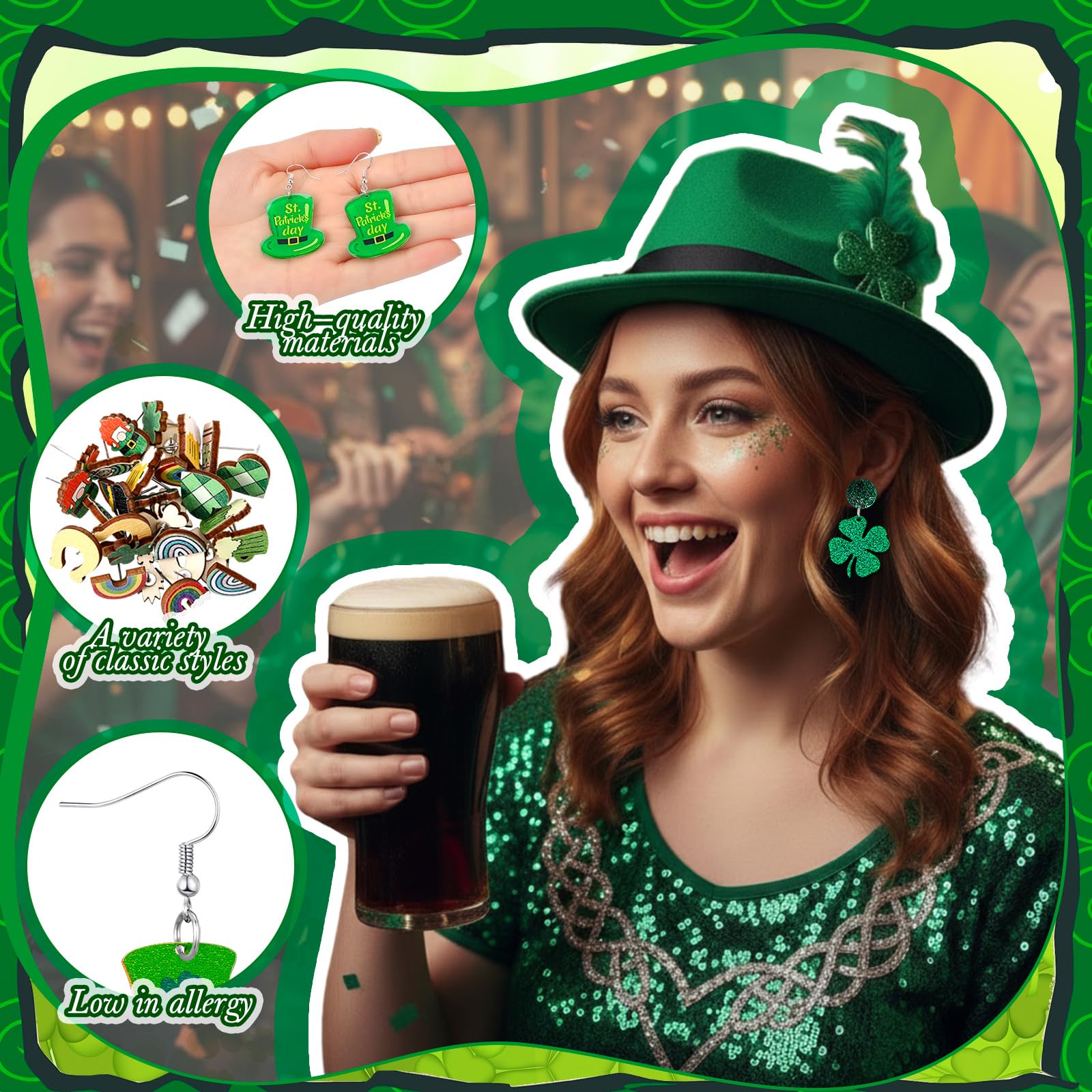 - St. Patrick's Day Earrings for Women Set: this pack includes 36 pairs of dangling earrings with 36 different designs, such as drop type, chain type, etc., 1 pair for each design, providing ample options for daily wear, ensuring that you have a unique pair for every occasion; With such an abundant quantity, you're assured of variety and versatility in your accessory collection